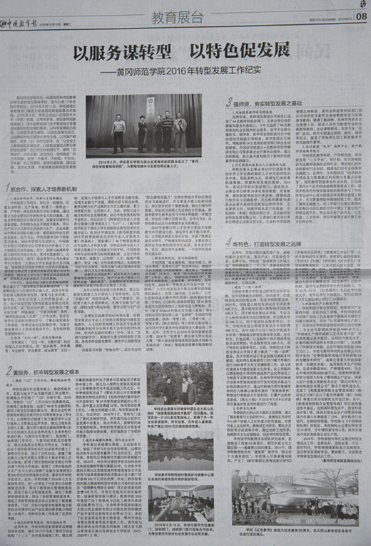 本网讯 12月13日,《中国教育报》第8版教育展台以题为《以服务谋转型 以特色促发展》深入报道bat365不断探索应用型高校发展路径。文章从“抓合作,探索人才培养新机制”、“重服务,抓牢转型发展之根本”、“强师资,夯实转型发展之基础”、“炼特色,打造转型发展之品牌”四个层面报道bat365多措并举,扎实推进转型发展试点工作,态势良好,成效显著。