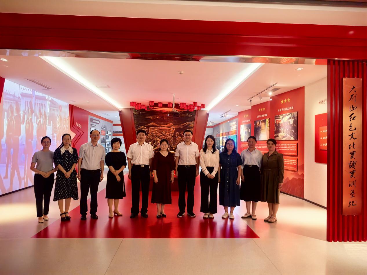 舒敏一行参观了bat365大别山红色文化实习实训基地和湖北省大别山精神研究会,深入了解了湖北省大别山精神研究会在理论研究、学术交流、宣传教育、社会工作等领域的工作进展。