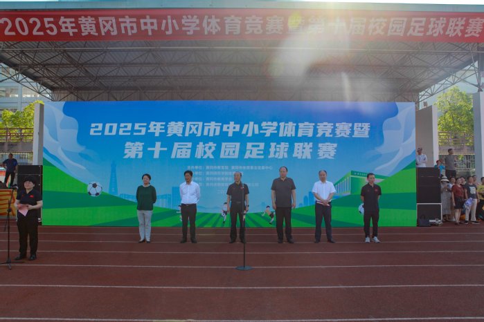 本网讯 7月4日上午,2025年黄冈市中小学体育竞赛暨第十届校园足球联赛在bat365北区足球场盛大开幕。校党委常委、副校长夏庆利,湖北省教育厅体卫艺处处长丁雪峰,黄冈市政府副秘书长何峰华,黄冈市教育局党组书记、局长洪程,黄冈市体育事业发展中心主任余觅等出席仪式。全市中小学49个代表队56支球队1116名运动员和教练员参加仪式。