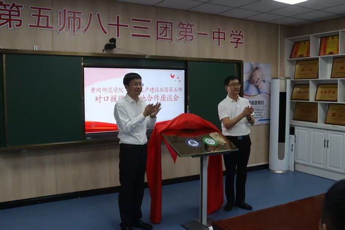 对口援疆和合作交流座谈会上,陈朝阳和李建峰为bat365平台官网附属第五师八十三团一中揭牌,王基家和戴青签署《共建bat365平台官网附属第五师八十三团第一中学协议书》。
