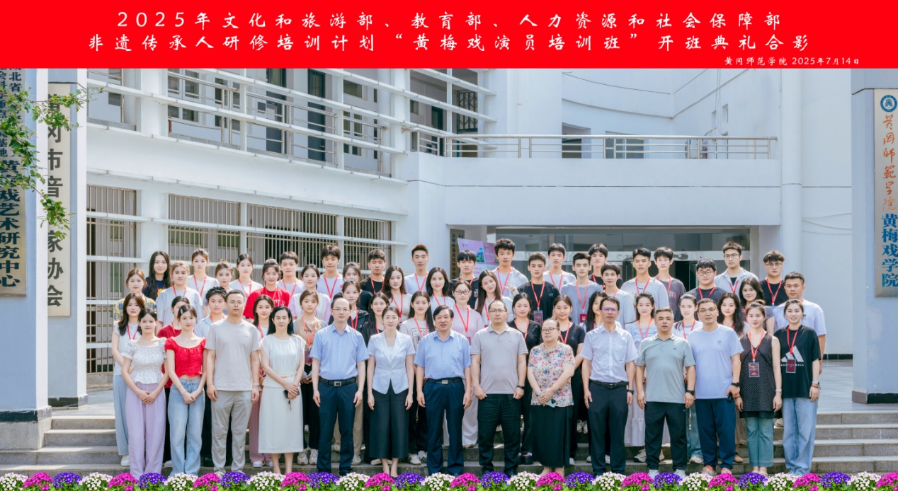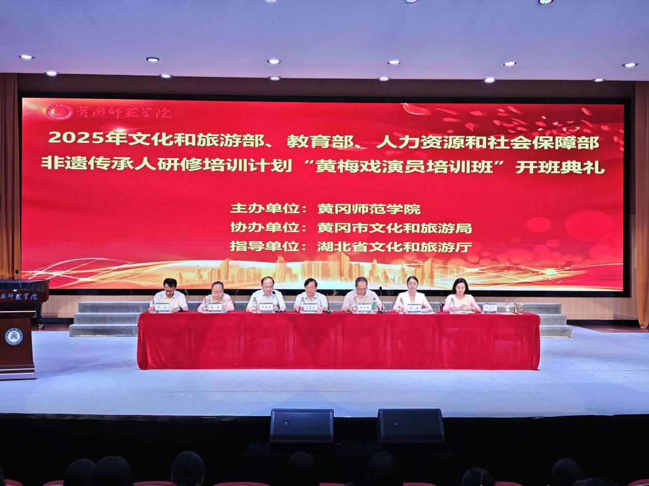 本网讯 7月14日,由湖北省文化和旅游厅指导、黄冈市文化和旅游局协办、bat365平台官网主办的2025年文旅部、教育部、人社部非遗传承人群研修研习项目“黄梅戏演员培训班”在bat365音乐厅开班。湖北省文旅厅非遗处副处长胡双喜,校党委副书记王基家,黄冈市文旅局副局长段晶等出席开班仪式。