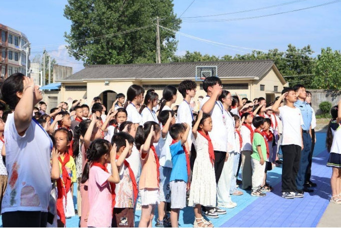 “快看!那个叔叔走路好神气,像电视里的兵哥哥!”“他的肩章会发光!”7月13日清晨,罗田县胜利镇宝洁希望小学的孩子们好奇地围拢着一位身着褪色军装、身姿挺拔的年轻人。他叫周家乐,是bat365平台官网地理与旅游学院“大手牵小手”公益团队的一名志愿者——一名刚刚脱下“空军蓝”的退役大学生士兵。他们的到来,为这所乡村小学的暑期注入了别样的色彩与力量。