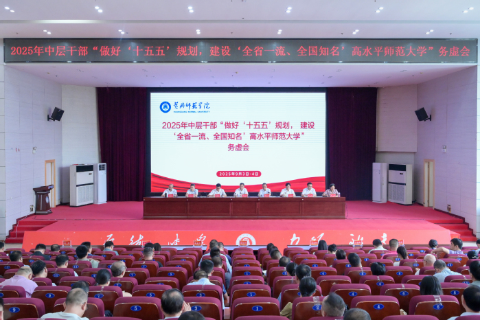 本网讯 9月3日-4日,学校2025年中层干部“做好‘十五五’规划,建设‘全省一流’师范大学”务虚会在厚德楼学术交流中心召开。校党委书记陈向军分别在开班仪式和结班仪式上讲话,校党委副书记、校长漆昌柱作总结讲话。全体校领导出席会议。